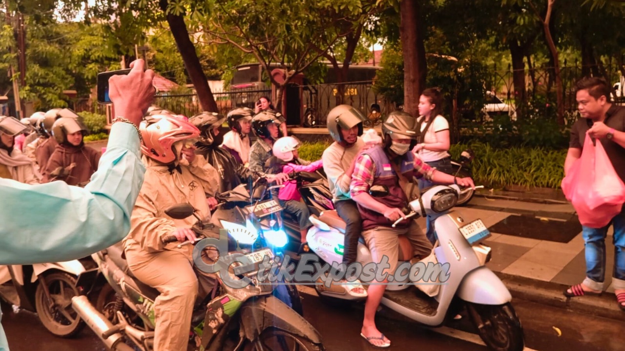 Sejumlah anggota Team DJ Cindi Aurora Official dengan penuh semangat turun langsung ke jalan untuk membagikan ratusan paket takjil kepada pengendara motor, sopir angkutan, hingga pejalan kaki yang melintas.